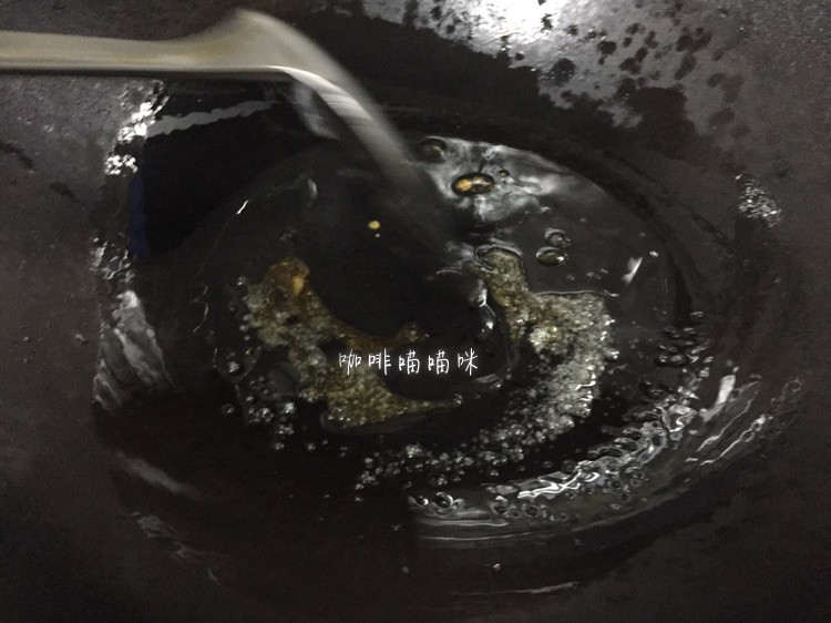 2.翻炒白砂糖一定要小火慢慢熬煮化至浅褐色