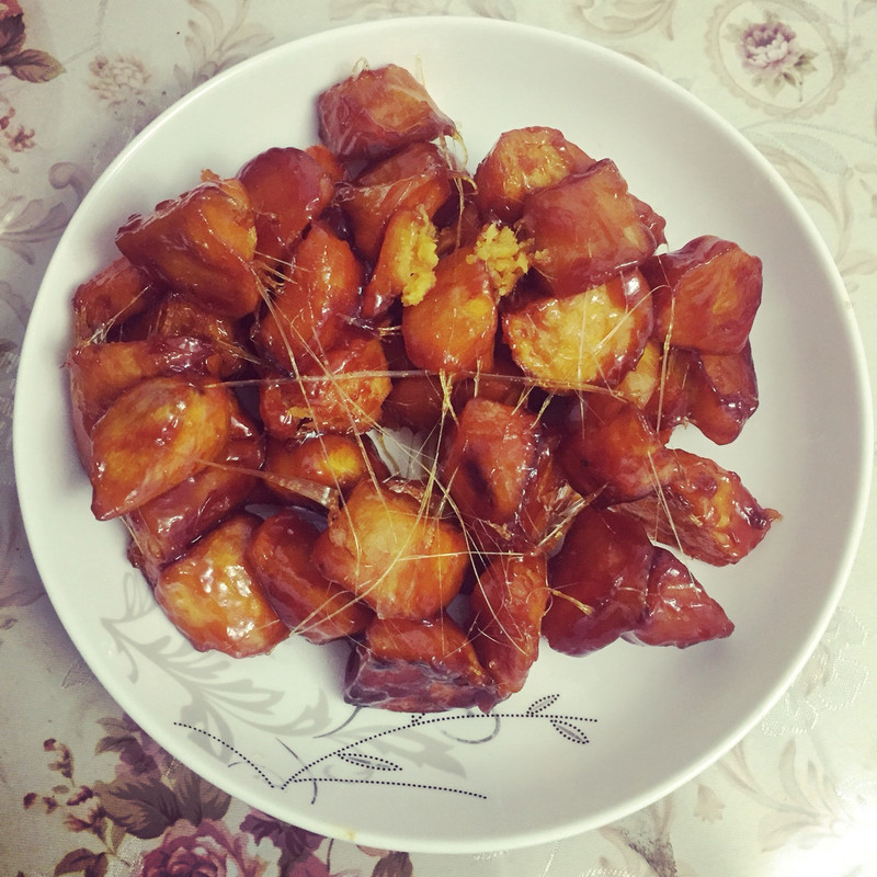 红薯去皮,洗净,切成3厘米大小的滚刀块,放入清水中浸洗,捞出,主要是洗去表面的淀粉防止一会一炸就变黑,沥去水分。 锅置旺火上,油烧至六成热时,放入红薯块慢慢炸制。 炸至红薯块充分成熟、外表微黄时捞出。拔丝红薯的烹饪技巧