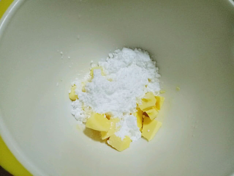 打至黄油体积蓬松,颜色发白,类似奶油霜状即可。