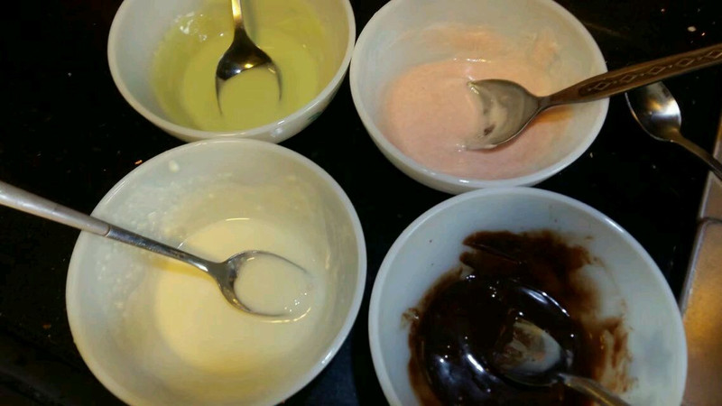 我第一次做的时候是用2个鸡蛋来做的,第二次做就用的三个鸡蛋的量来做的,做出来的甜甜更饱满,感觉更好看一些,这只是本人的感觉。如果觉得2个鸡蛋来做的话也行,只是没有哪么饱满而已。整体感觉都差不多,呵呵呵呵,我说多了哦,(以一个鸡蛋为例的话,它们的比例是,1个鸡蛋、低筋面粉40g、细砂糖20g、玉米油8g)