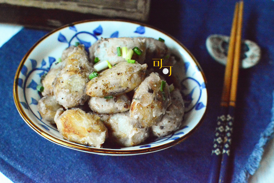 这道菜背后的故爱吃芋头,爱它的粉糯绵软,宁波的奉化芋艿头天下有名,可是那要等秋末,更何况奉化芋头个太大,一餐吃不完,下一餐味道就会逊色。内心里我更偏爱是芋头仔,宁波人叫芋艿仔,特别的软糯,用了猪油渣做成芋泥,加点葱花就非常好吃。今天做成椒盐口味,外面裹一层薄薄的淀粉,也不用油锅炸,就四面煎一煎,洒些椒盐,咸香酥脆,非常好吃,说是下饭菜,一口一个筷子也停不下来,没等开饭,已吃得差不多了。这个芋头出产的时间不长,也就夏末这一段,天再冷下去就吃不到了,想吃的朋友抓紧哦事~(选填)