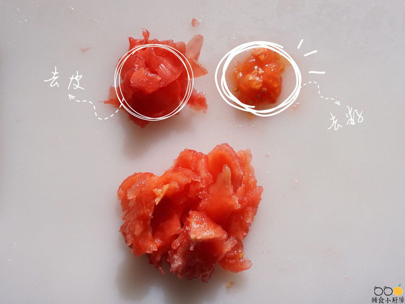 * 因为番茄籽比肉容易过敏,所以给小月龄宝宝制作时要去籽哦!
