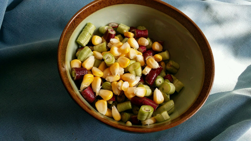 两种不同色的猪腰豆,也就是豆角了,甜嫩无渣,夏季美食之一,市场看到就马上买买买,配上玉米粒来增加口感,只需焯水的时候加一点盐,捞出和蚝油拌匀就可以很美味啦!配上轻脂营养的龙俐鱼,这道菜清爽又健康!顺便写个搭配食用的吐司简单做法。
