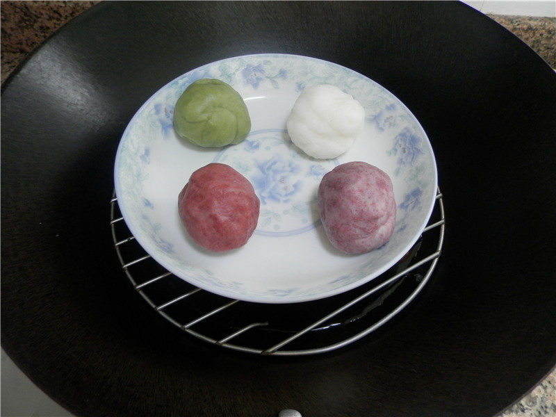 紫薯粉是自制的,各色天然色素做冰皮月饼,真的很赏心悦目!