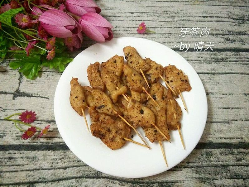 牙签肉,最喜欢牛肉版的, 没有牛肉就试试鸡肉。