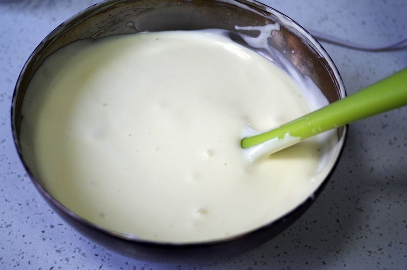 4、蛋糕卷部分蛋白霜打发的时候一定需要打发湿性发泡,卷蛋糕卷的时候才不容易开裂。