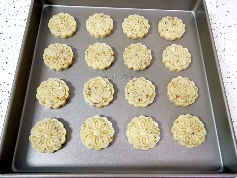 没有月饼模具的可以做传统的核桃酥,取一个小团子用手掌按扁,出现漂亮的自然裂纹。