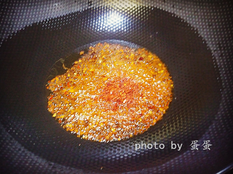2,可以将步骤2-3放到最后一步进行,即:锅烧热,加入花生油a烧开转小火,放入麻椒炸至花椒变深几乎黑色关火,微晾半分钟,加辣椒碎出香味趁热浇到肉片上。