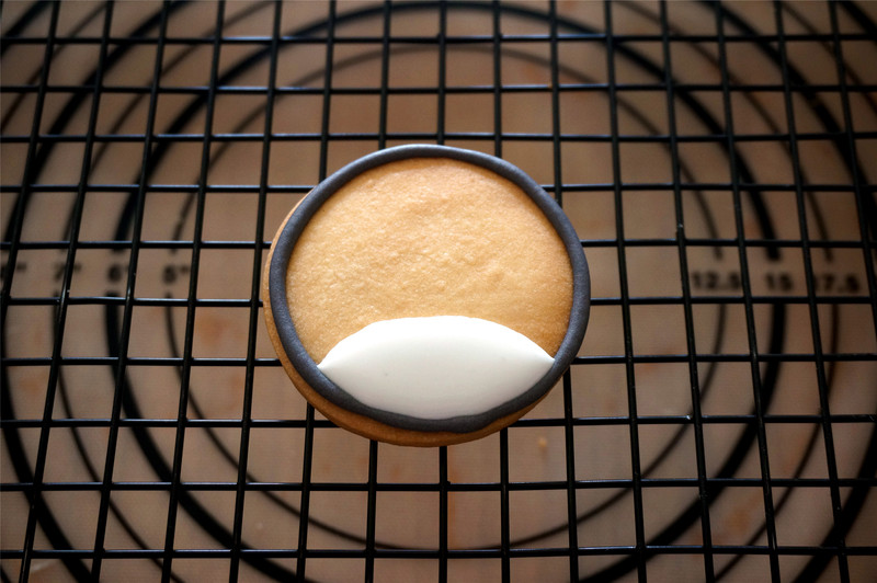 这里的糖霜是用蛋清加糖粉制作而成的,用柠檬汁调节浓稠度,食用色素调色制作。如果怕生蛋清,可以用蛋白粉代替。蛋白粉糖霜的配方如下:糖粉125克,蛋白粉5克,温水10克,浓稠度同样是用柠檬汁调节即可。