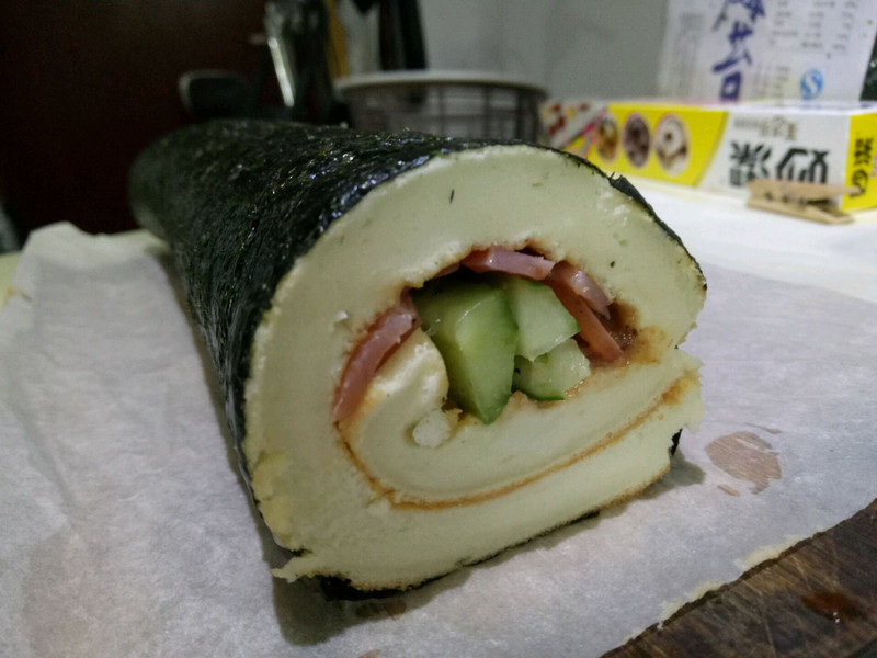 昨天做了蛋挞,剩下很多蛋清,煎的又不好吃,倒掉又浪费……于是今天就按照蔓越莓卷的配方做出了紫菜卷,好吃又不浪费!