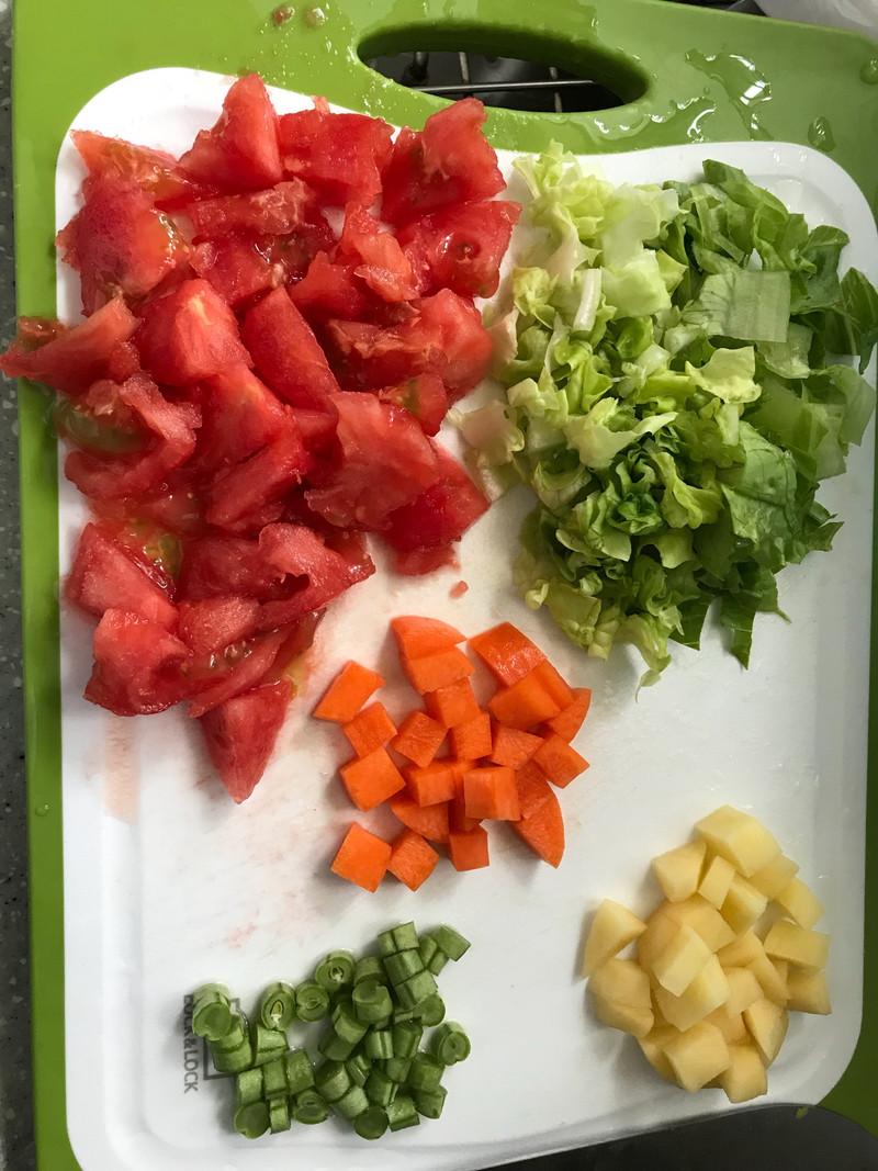 胡萝卜和土豆不容易熟,可以先焯水,没出去买菜,所以食材有点少,可以加点蘑菇等增加口感