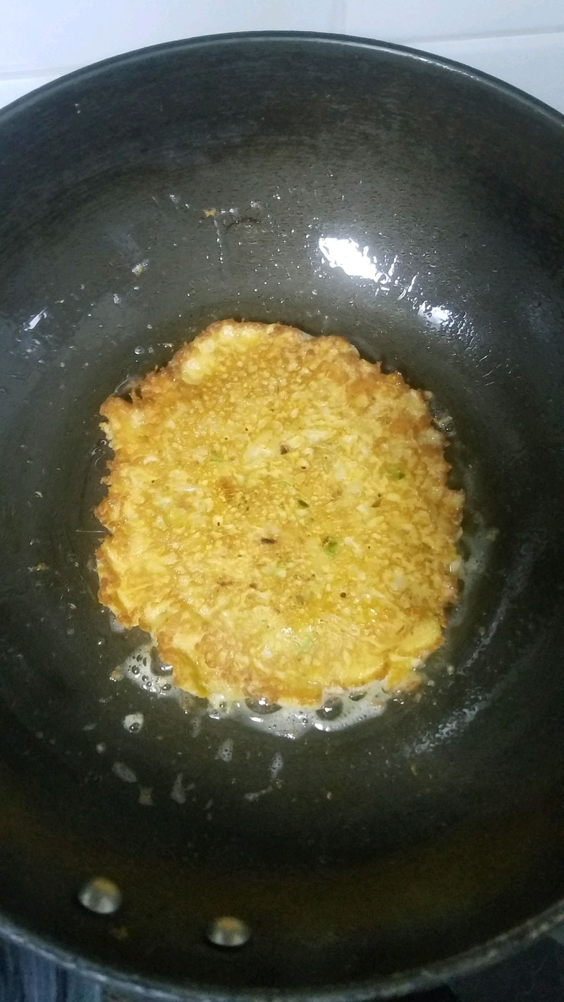 剩了一些面条,扔了还可惜,想了一个好办法,做了这个美味的面条鸡蛋饼!很好吃!
