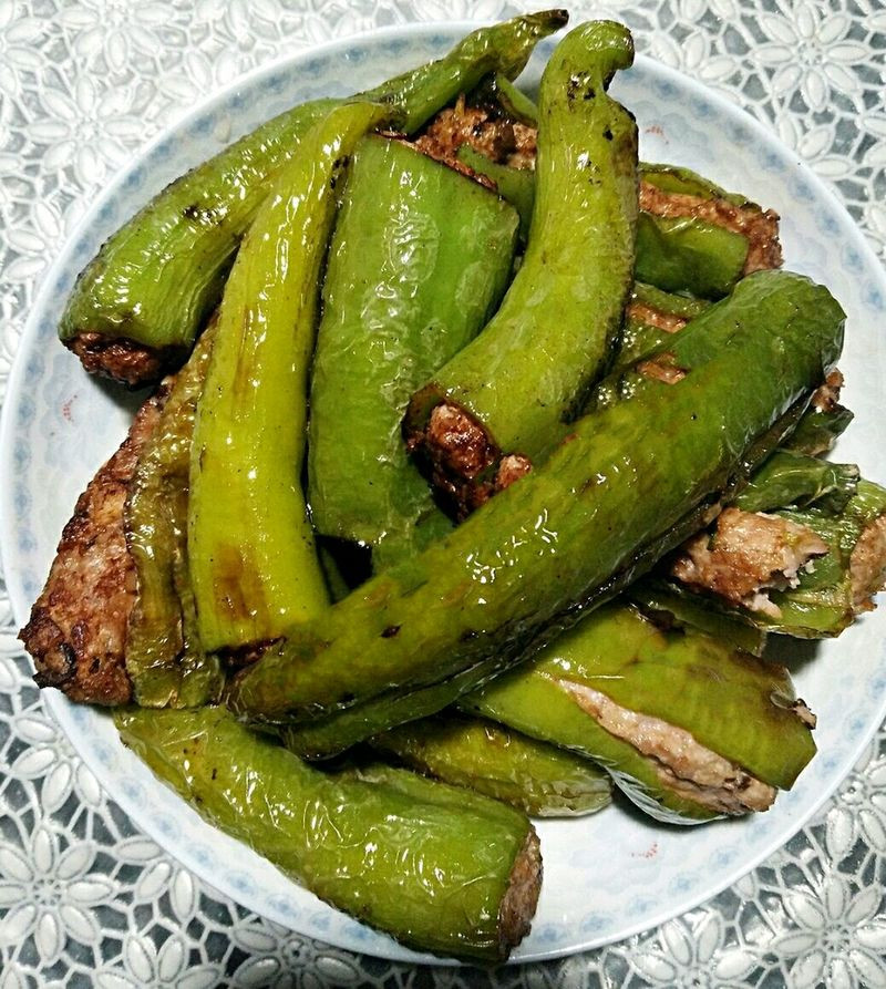 做过2次青椒酿都以失败告终,对做青椒酿这件事基本绝望,一次偶然的机会我包豆腐圆子的时候因为豆腐不够就刚好把剩下的肉馅儿做成了青椒酿,结果味道莫名的和谐