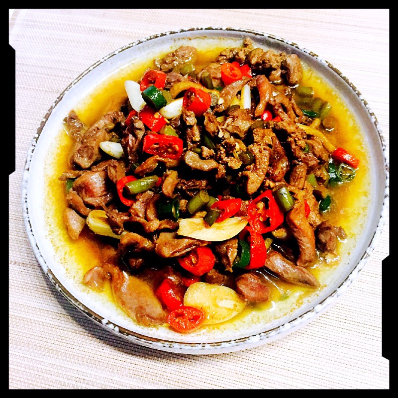 2018年1月27日 老公出差外地,说回来吃晚饭,洗好鸡后接到电话:大雪,车次取消。鸡肉收进冰箱,可挡不住贪吃的心,收拾收拾给自己炒了个辣乎乎的鸡杂