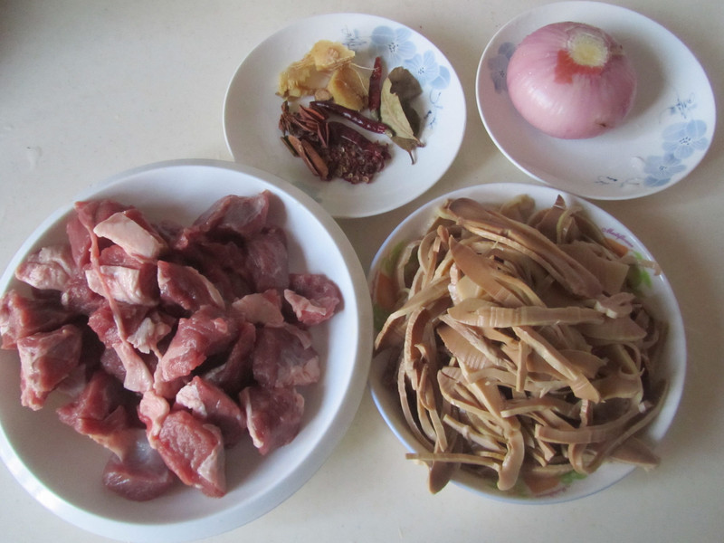1. 牛肉要用冷水焯水, 加入姜片和白酒能帮助去腥; 2. 先煸炒大料能更激发其香味; 3. 笋子不易熟,所以要一起与牛肉下锅炖煮; 4. 加入一个洋葱帮助去腥, 煮好后直接捞出来, 所以不要切开。