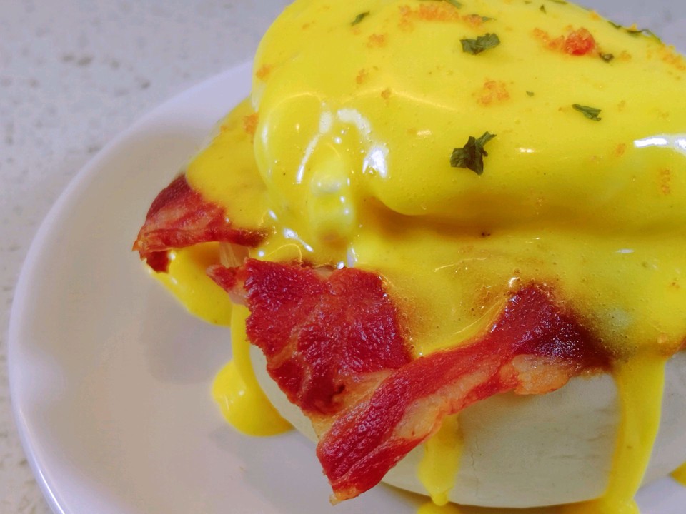 书归正文。班尼迪克蛋其实是美国一种简易早餐的名称,有着早餐女王之称。做法非常简单,水波蛋配上英式的松饼、培根和荷兰式酱汁(英文名hollandaise sauce)就完成了。而今天我们要做的是绘里奈的女王班尼迪克蛋,也就是普通班尼迪克蛋的进化版。