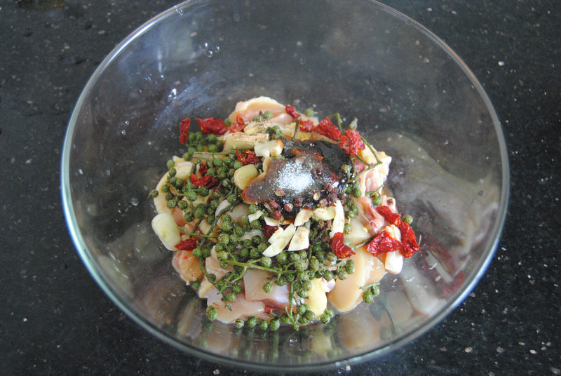 昨天和朋友谈天说地时聊起四川的藤椒钵钵鸡,椒香麻辣,忍不住一阵咽口水。今天翻冰箱看到一袋去年买的冷冻藤椒,想着买回来大半年了,再不吃可能得过期了。什么都抵挡不住吃货的心,我立刻下楼买了半边三黄鸡,马上干起来。