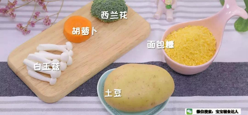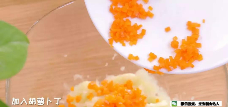 3.土豆泥是有一点点粘手的,建议麻麻可以在手上抹少许的清水,用来防粘!