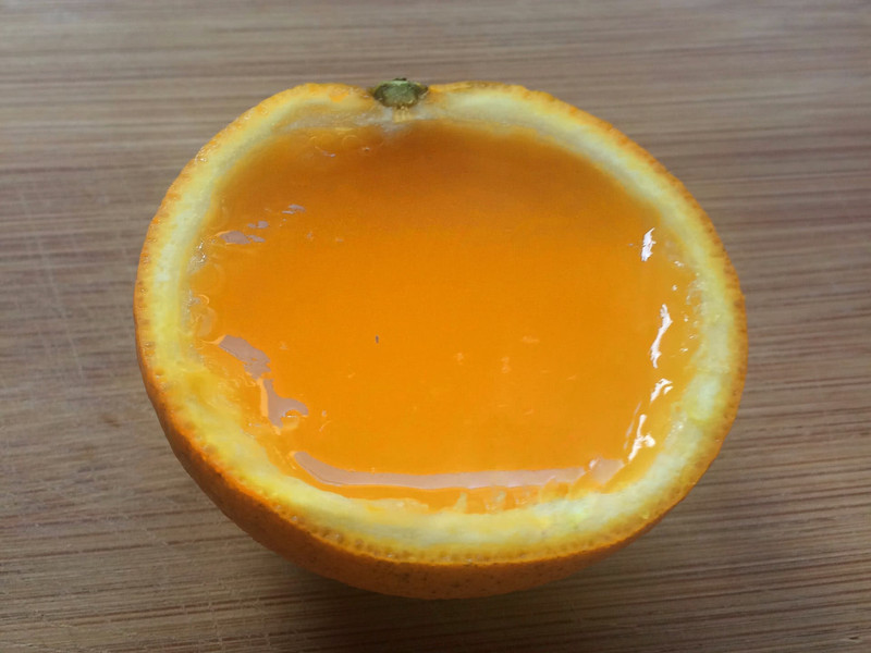 实在好吃,于是拿了一些橙子手动榨汁,橙子皮也运用起来,做了一些橙子果冻。