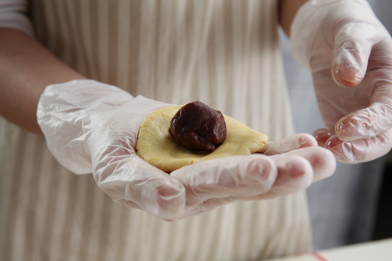 3、馅料可根据自己喜好,换成花生、芝麻、果味馅等。