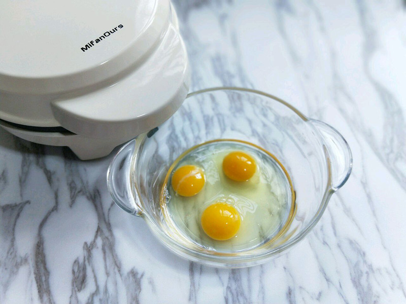 首先将鸡蛋敲大口器具中。(我选用的草鸡蛋,比较小,所以用3只,如果用洋鸡蛋两只就可以)