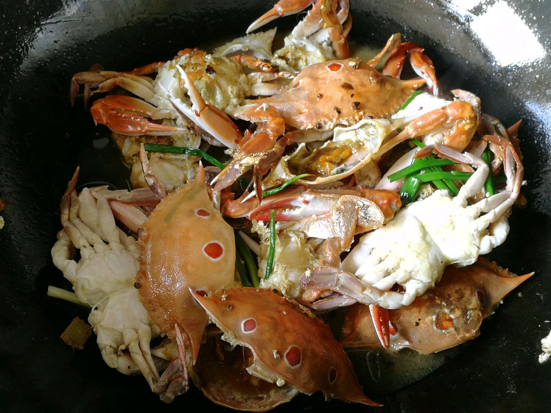 螃蟹本身有点咸味,不需要再放盐,酱油也不要下太多,不然就太咸了。