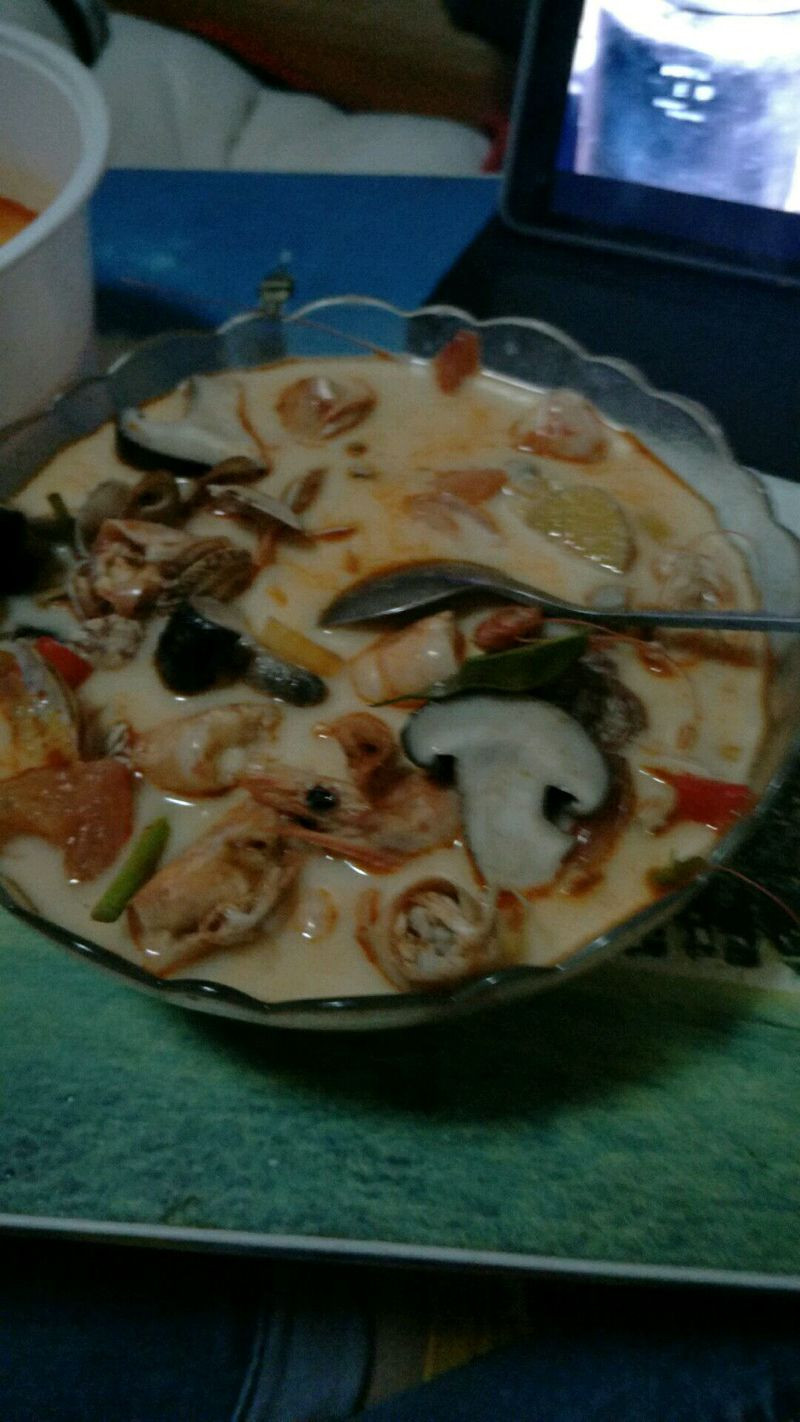去年的时候出差去柬埔寨,当地同事邀请去了一个当地的饭店,头一次喝冬荫功汤当地版本的,觉得非常好喝,回国以后在淘宝买了好多次材料也没做出那个味道,最近老板又去了柬埔寨,托当地人给我要了个食谱。竟然是一样的味道…
