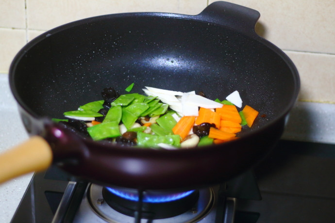 2、炒的过程中根据食材的不同特性分次放,不要全部一次性下锅