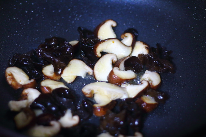 3、煸炒香菇的时候用中火,其他食材入锅后建议大火快速翻炒