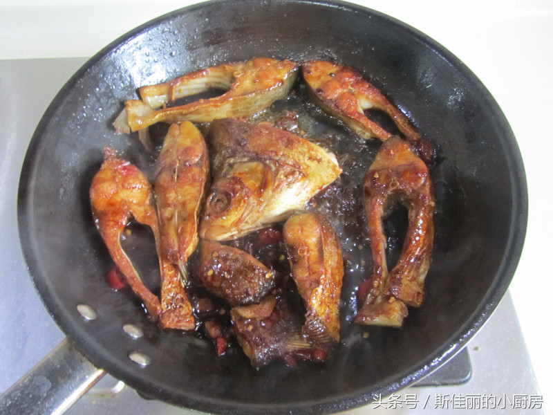 1. 鳊鱼切成小段后加入盐和大料等腌制入味, 再将它风干,时间大约在三个小时以上,这样吃起来干香更入味; 2. 先将鱼煎至金黄, 再烹入料酒和生抽,加入腌制的大料一起焖烧,直至到汁完全收干; 3. 再将做好的鱼整齐的摆放好成为一条整鱼, 让菜品好吃又好看。