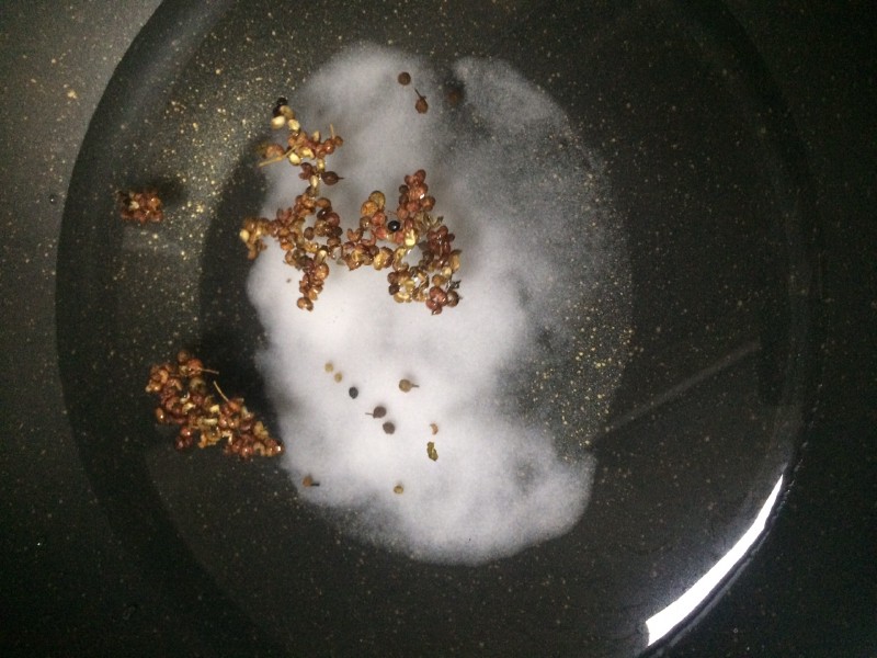 3.待豆角取完余下花椒水可以重复操作加入豆角继续利用,重复利用时可以适量加入食盐和水煮开放凉再装入密封罐。