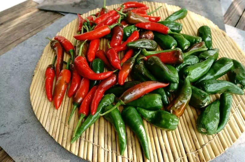 晾干后把辣椒切开方便入味。