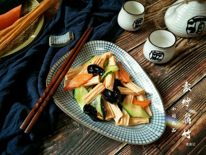腐竹是大豆磨浆烧煮后,凝结干制而成的豆制品。腐竹是从锅中挑皮、捋直,卷成杆状,经过烘干而制成的。腐竹以颜色浅麦黄,有光泽,蜂窝均匀,折之易断,外形整齐的质佳。腐竹是豆制品的高档食品,该产品营养价值之高,被人们广称为“素中之荤”,备受广大消费者的喜爱。腐竹由黄豆制成,具有与黄豆相似的营养价值,如黄豆蛋白、膳食纤维及碳水化台物等,对人体非常有益。腐竹的保健功能同豆浆相差无几,几乎适合一切人食用。