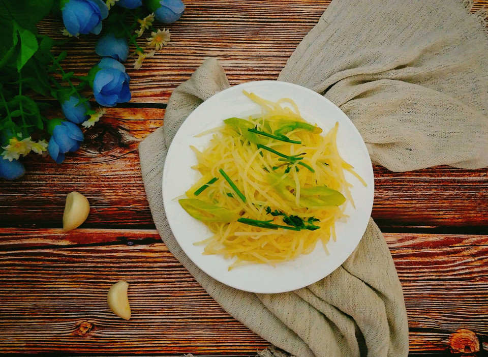 1、酸辣土豆丝要用白醋,这样不改变土豆丝的颜色。