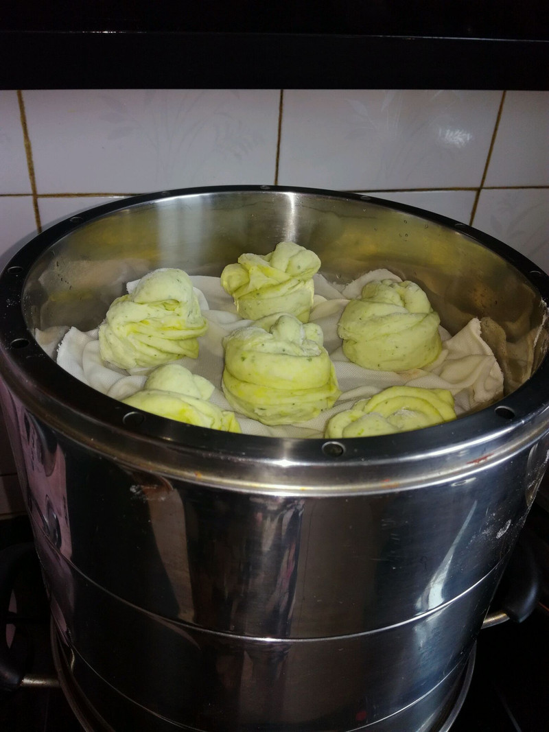 菠菜先焯水过凉水,然后用料理机放适量水打碎,我是带菠菜都放在里面的,花卷大小自己定,时间就和花卷大小有关了,我做的是18个花卷蒸28分钟,记得一定凉水下锅,这是我的做法~面不需要二次醒发。