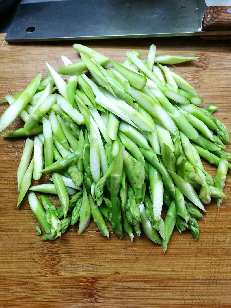 芦笋下锅炒的时候要快,不要炒太久,因为要保持它爽脆的口感。