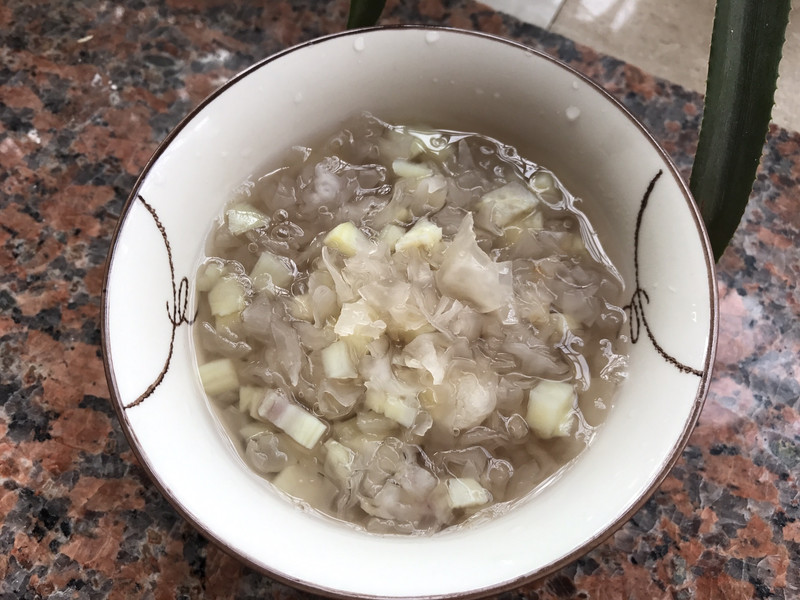 我家宝宝快一岁,有牙齿,所以颗粒比较大,如果你家的宝宝相对小一点的话,煮好后的银耳番薯羹放入料理机打成泥就可以了。