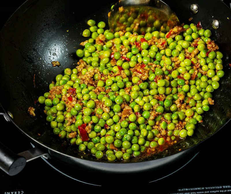 豌豆清香柔嫩,新鲜回甜,寇大香鲜椒豆瓣爆香提味,让原本的清香多了一分热烈。正如平凡的生活,平凡却也有着别样的香甜,而爱情就是生活中的那一分热烈。