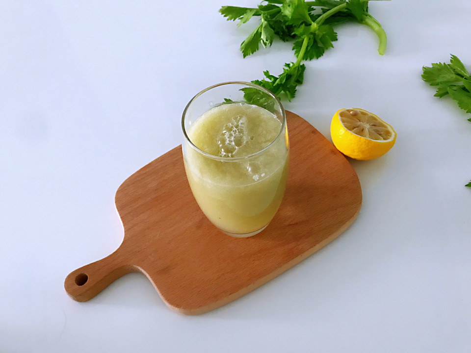 这杯天然的雪梨芹菜汁,其中高活性物质很容易被氧化而变色,所以做好以后应尽快喝掉,避免营养成分的流失。