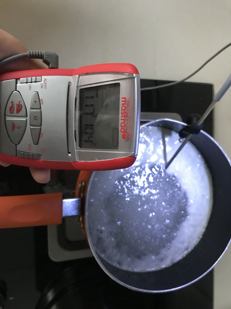 水开后始终保持小火煮,水烧开很快,100度到117度之间升温很慢,需要耐心保持小火煮。