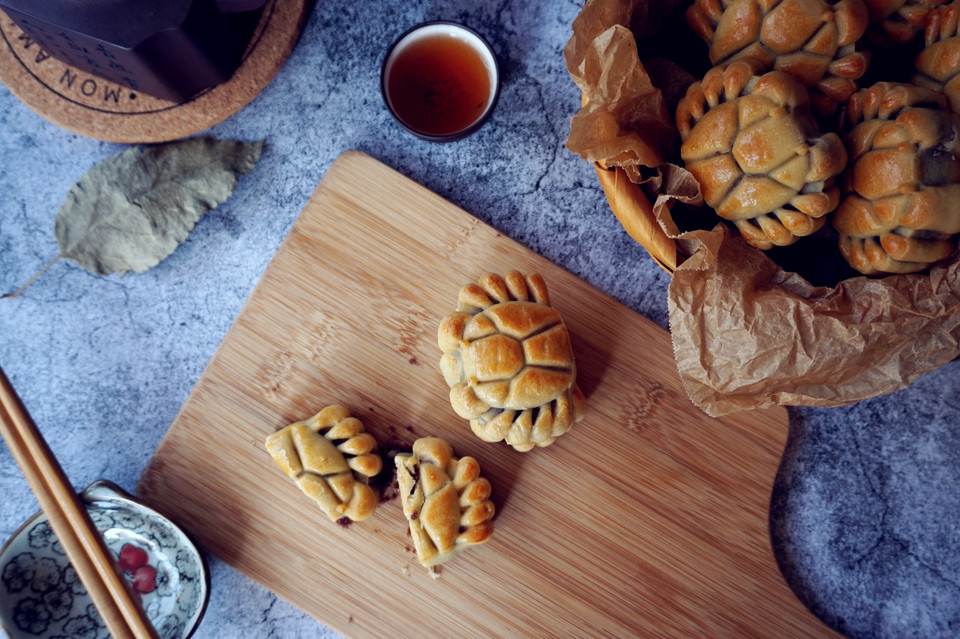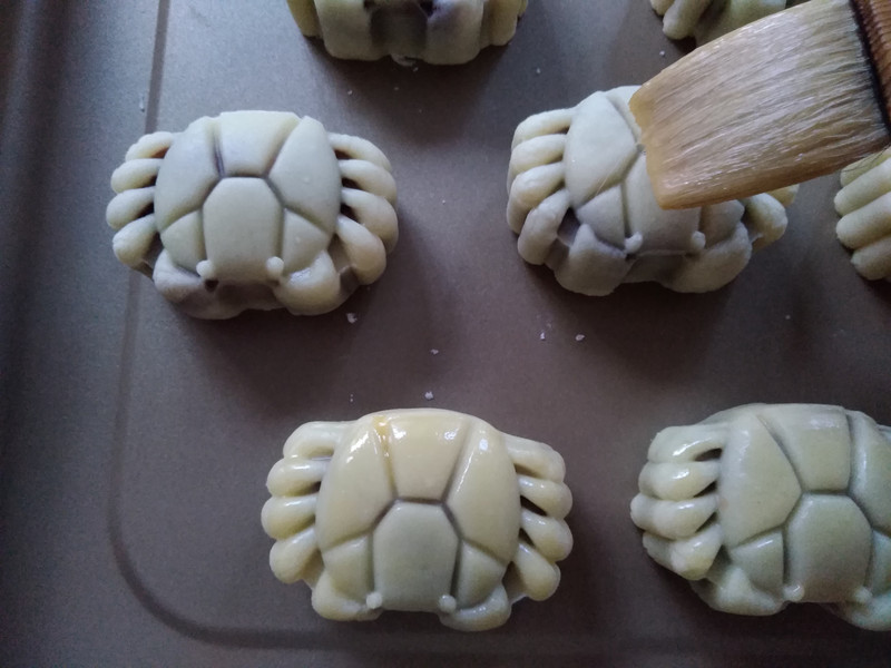 这个螃蟹月饼是今年月饼界的新宠,得跟潮流走一回。馅料我用的是自制豆沙加上肉松混合成,咸甜味,不会甜腻,也可以换成你喜欢的馅料。
