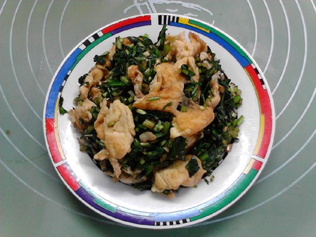 蒲公英是天然消炎药,有清热解毒之效用。味道微苦,有一种别样的清香。虽然它在餐桌上并不太受欢迎,却还是乐此不疲地把它摆上餐桌,独食专享。曾经折腾了各种蒲公英的吃法,把自己乐意使用的方式几乎使了个遍,而今再吃蒲公英也只是重复往日而已。正感到蒲公英的吃法再无新意,忽然想起蒲公英还没用来炒过万能的鸡蛋。越是常见的方式越容易被忽略。刚好还剩有一小把蒲公英,就来炒个鸡蛋吃吃。