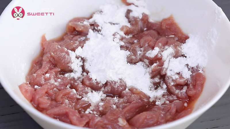 2、腌制梅条肉时,腌料被梅条肉吸收后再加生粉抓匀,肉会更嫩。