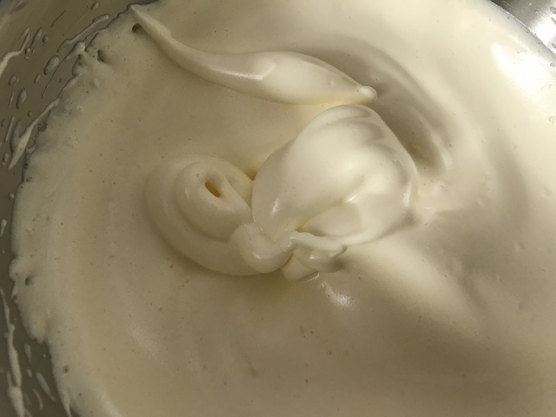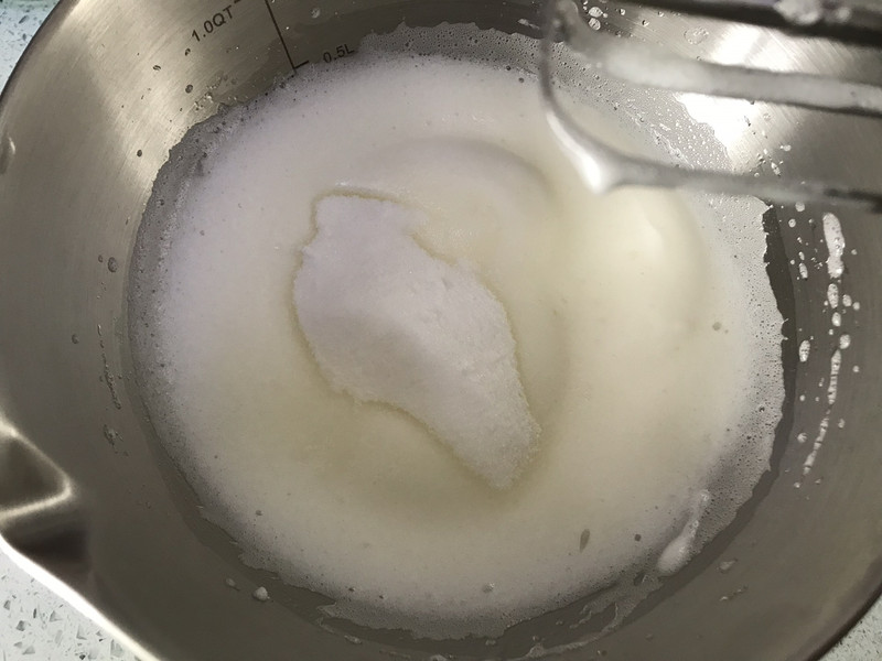 注意⚠️1、蛋白一定要打到直立尖角状态,否则拌面糊时很容易消泡。