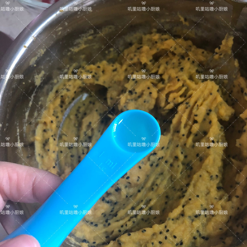 大家不要看到我的配图、红薯泥觉得特别多,因为我其实是用这个红薯泥做两个零食吃,所以分量很多,这个小饼干并没有用到配图中全部的红薯泥。