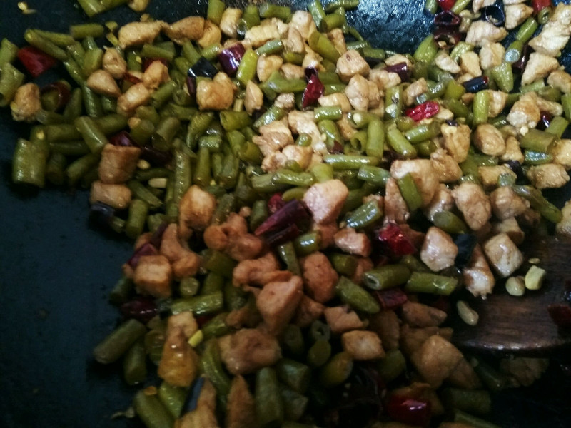 炒肉的时候要先把肉里的水分炒干,再下入酸豆角煸炒,这样更有利于肉吸收酸豆角的味道,下入酸豆角后,也一定要把水分煸干后再出锅,这样更加好吃。