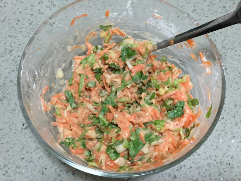2、胡萝卜尽量切得碎一些,这样成品会比较美观。
