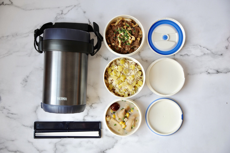 在那么多的便当盒中,一眼就相中了膳魔师的便当盒,选中了“膳魔师高真空保温便当盒(JBG2000NVY)外观时尚美观,内在材质放心。容量刚刚好:常温菜盒容量400ml,也可以放水果和凉菜。保温饭盒容量750ml 保温汤盒容量300ml。饭盒可以微波,保温功能很好,70度以上保温6小时.可伸缩背带,可以手提也可以肩背方便携带。每天带着便当上班温暖幸福又滋补养身。