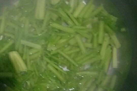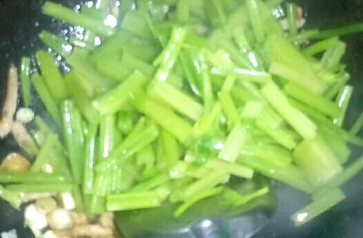 1.芹菜烫一下,炒的时候翻炒均匀即可,可防止芹菜炒老。