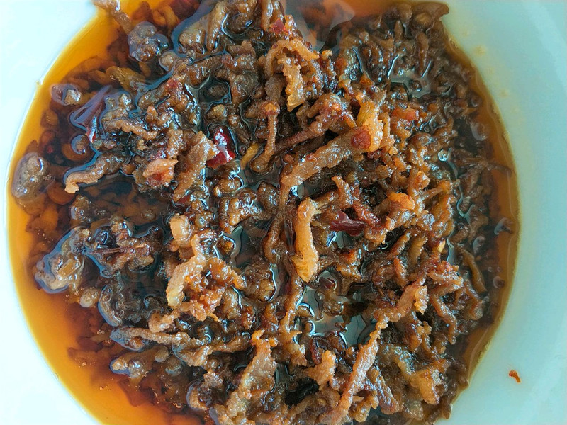 3⃣一定要把水份炒干,不然很容易坏,油也要多一点,肉要浸在油里。